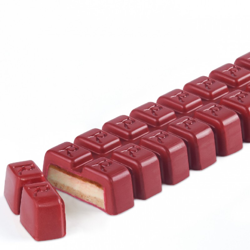 Xocolata blanca (sucre, mantega de cacau, llet desnatada en pols, matèria grassa làctia, emulgent: lecitina de soja, aroma natural de vainilla), xarop de glucosa, ametlla (8%), sucre invertit, puré de poma verda (5%) (poma verda, sucre, antioxidant: àcid ascòrbic, acidulant: àcid cítric), galeta [farina de galeta (farina de blat, sucre, mantega, llet sencera en pols, oli d’oliva, gasificants (bicarbonat sòdic, bicarbonat amònic), dextrosa, ous frescos, xarop de glucosa, sal, aroma de vainillina), mantega, sucre, farina de blat, ou pasteuritzat, sal], mantega de cacau, llet sencera en pols, concentrat de suc de poma (0,9%), acidulant: àcid cítric, oli de gira-sol, humectant: glicerina, aroma de poma caramel·litzada (0,2%), vainilla en pols, colorants: E-120 i E-172, sal, conservador: sorbat potàssic.