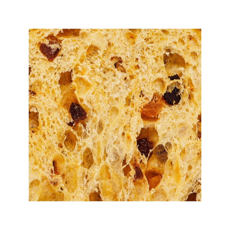 Un producto ya clásico en El Celler de Can Roca. Elaborado con masa madre fermentada lentamente durante 48h, y fruta confitada. Un panettone húmedo, aireado y con su característico sabor a Navidad.