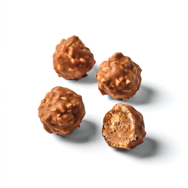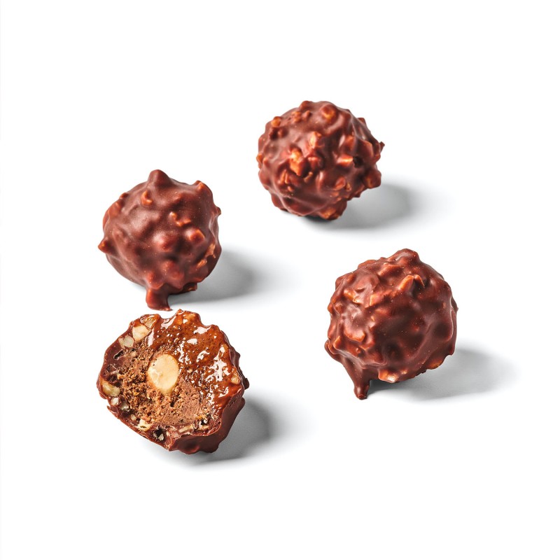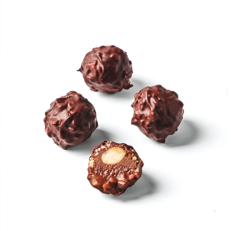 Une sélection unique de 9 bonbons au chocolat et fruits secs, composée de :