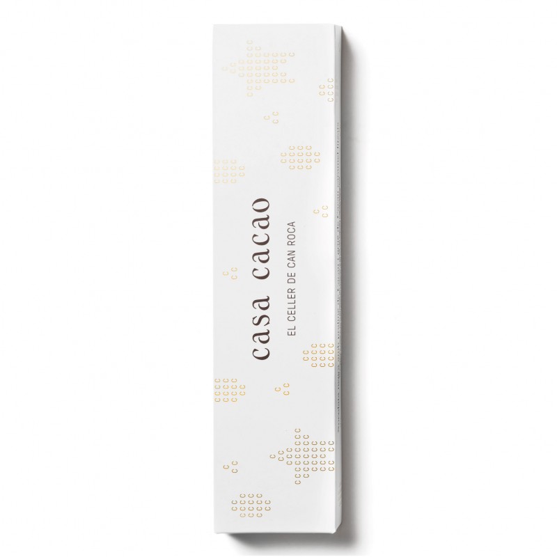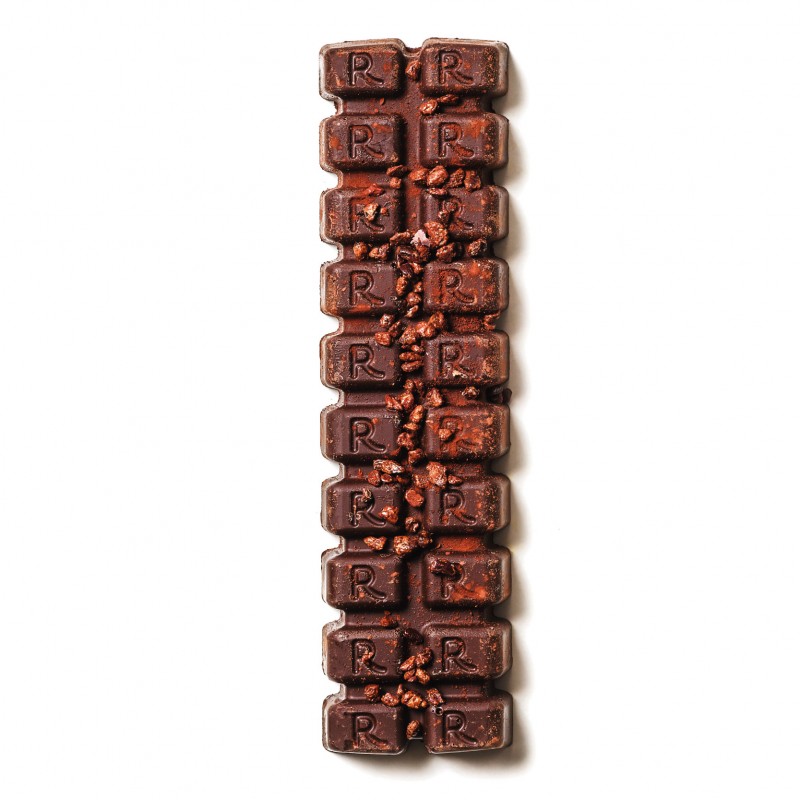 Nougat au chocolat avec praliné de cacao et éclats de fèves de cacao caramélisées. Élaboré artisanalement dans notre atelier Bean to Bar.